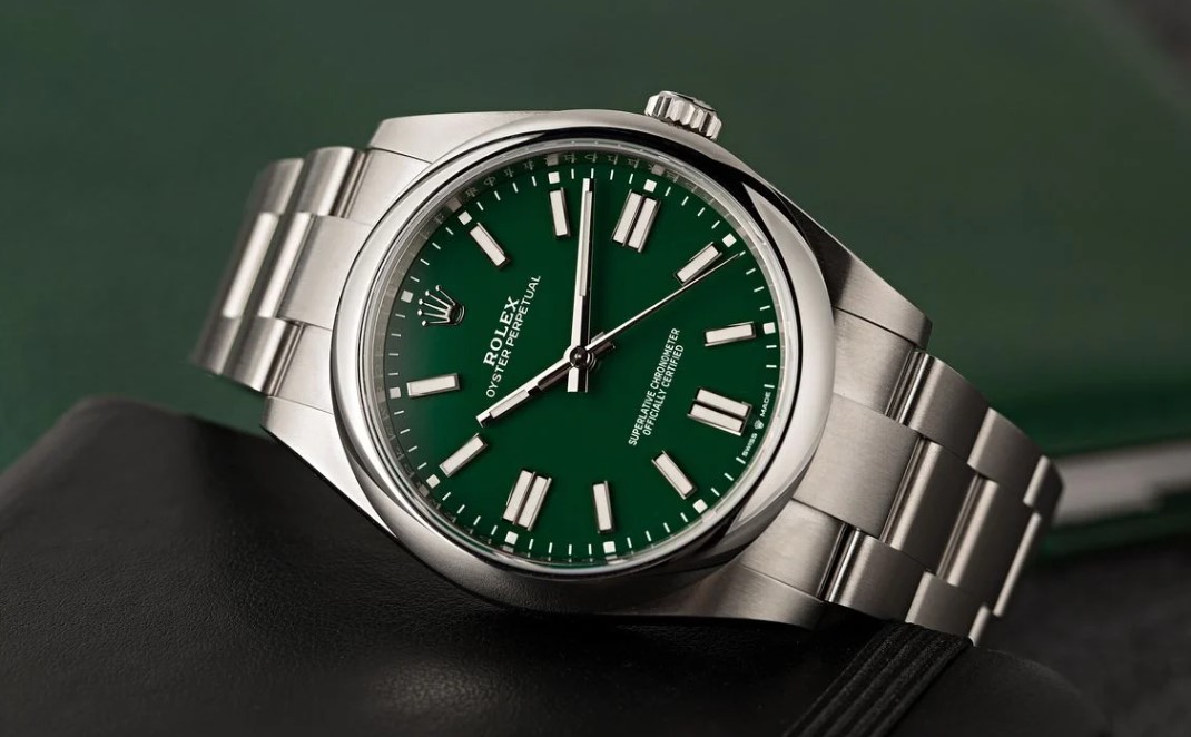 With case sizes ranging from 24mm to 41mm, the Oyster Perpetual suits nearly every wrist size or fashion preference. Recent vibrant dial options – including coral red, turquoise blue, and forest green – introduce contemporary styles while still preserving the model’s ageless elegance and classic appeal.